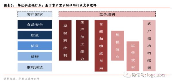 餐饮供应链:万亿市场。具备成长性客户诉求和竞争逻辑:我们认为生产能力、仓储和物流能力以及客户的需求挖掘能力是当前餐饮供应链行业的重要竞争维度。