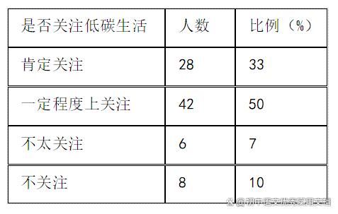 材料二:关于“是否关注低碳生活”的调查(共84人)