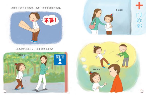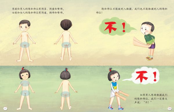 《我们的身体》一册通过介绍男性和女性身体器官,包括生殖器官的不同,使幼儿对不同身体器官形成初步的认识,同时向幼儿强调要保护好自己的生殖器官,因为这是不能够被别人随意触碰的隐私部位 [49]。