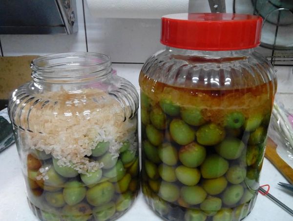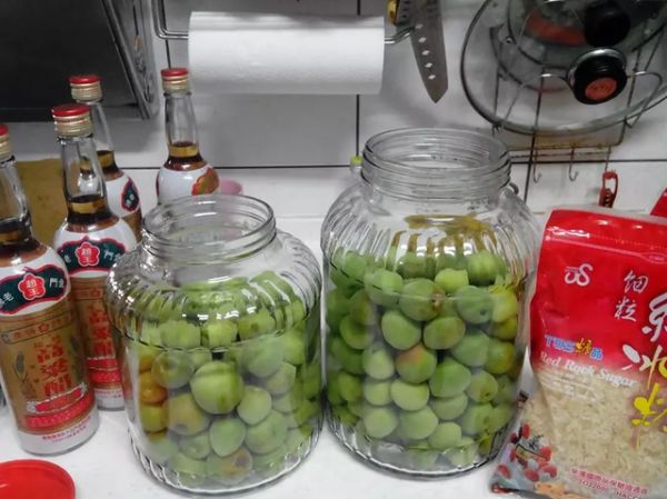 食材:青梅3斤、高粱醋600ml3罐、冰糖3斤