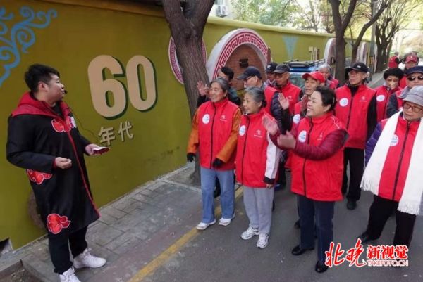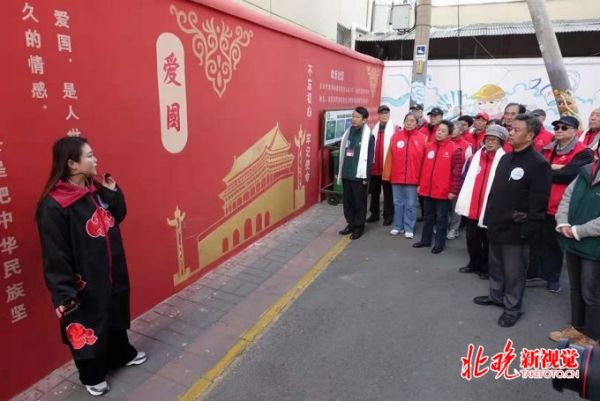 此次健康竞走活动由劲松八区居委会主任季甜带领大家一起行走,全程约1000米,环绕全要素改造的六个站点,每个站点都有专职讲解员为居民讲述社区微改造的故事与设计理念。涂鸦墙站点描绘的是居民日常生活,历史文化墙站点上的老物件是居民亲手赠与的,百福墙站点上的福字是居民手写的……