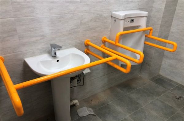 方便行动障碍者使用的带安全抓杆的小便位。