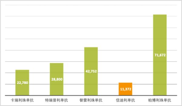 如下图所示,基于目前的市场价格以及结合已经落地的医保政策和援助项目计划,信达的信迪利单抗以1.1万元覆盖前4个周期的巨大优势,在所有单抗产品中表现强势,而K药由于全球价格保护体系,高达7万元的门槛价仍然让很多患者望而却步,可及性有待进一步提升。