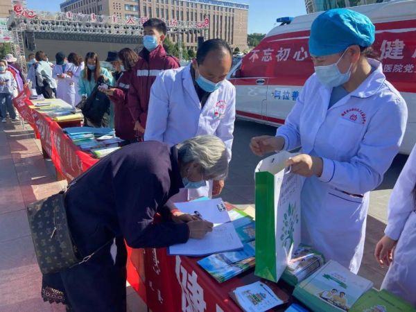本次“全民营养周”活动以“知营养 会运动 防肥胖 促健康”主题,宣传口号为:“健康中国 营养先行”“膳食新指南 健康常相伴”。现场共计给群众免费测量血压100余人,采取蒙汉双语为群众“零距离”解答日常生活中碰到的疾病咨询与防治知识,累计发放蒙汉宣传册1000余份。