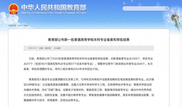 3月19日,教育部发布2024年普通高等学校本科专业目录,体育康养专业等纳入本科专业目录,该专业将于广州体育学院开设,并将列入2024年本科招生计划。