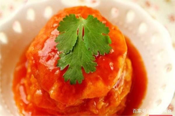 糖醋番茄这道菜色泽红绿相映,番茄软滑,酸甜适口。西红柿营养丰富,每500克西红柿中含胡萝卜素1.79毫克,维生素b10,15毫克,维生素b2,0.1毫克,尼克酸0.9毫克,维生素B39毫克,钙39毫克,磷116毫克,铁3.9毫克,大脑的发育很需要维生素b1,而番茄中恰恰较多的含有这种营养素,当西红柿大量上市的时候少年儿童多吃些西红柿,对保持良好的记忆减缓脑部疲劳是非常有益的。