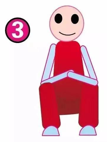 两脚前脚掌着地,脚后跟抬离地面。双膝弯曲,大腿压着小腿,时间控制在30秒—1分钟即可。