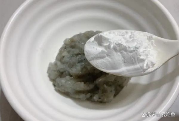 第二天早上取出虾泥,加入蛋清、淀粉,朝着一个方向搅拌,变得粘稠后停止。