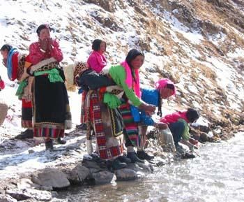 这时,西藏高原雨季刚过,风和日丽,河清水暖。于是,一那群接一群的男女老少,全家出动,扶老携幼,纷纷来到河溪之中,尽情地在水中嬉戏、洗澡、游泳,累了便坐在岸边石阶上,洗涮身上的污秽以及各种灾难、疾病、烦恼和痛苦。那些上了岁数的老人也来到河边蹲在台阶上,先洗头,后脱光上身,用水擦身,最后下河洗澡。人们不仅洗头、洗澡,也顺便洗洗衣服、被褥。