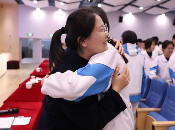 这种互动不仅让同学们更好地理解了讲座内容,还在交流中获得了更多应对压力的方法与灵感。张老师带领学生进行情绪处理、自我疗愈,鼓励学生之间互相拥抱,与老师拥抱,现场氛围热烈而温馨。