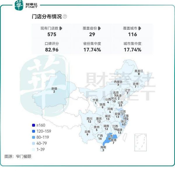 窄门餐眼数据显示,味千中国门店主要布局区域包括上海(102间)、广东(85间)、江苏(71间)及浙江(63间),其中一线及新一线城市是其重点布局的市场。