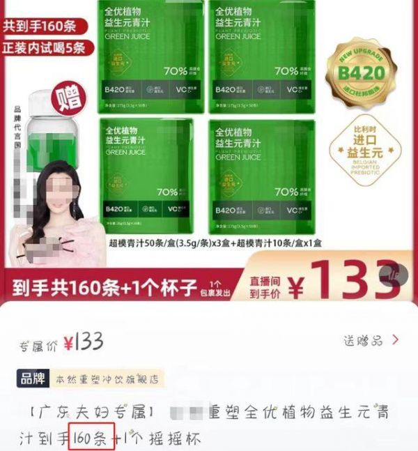 据相关媒体报道称,青汁的成本价只有20元,然而市场标价却是149元的高价。而这对狼狗夫妇在自己的直播间内直播12个小时,就狂卖出了该青汁产品一亿条,现场粉丝人数高达7000万。