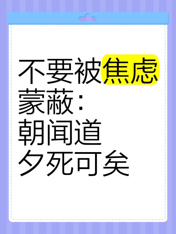 不要被焦虑蒙蔽:朝闻道,夕死可矣 最近打...全文