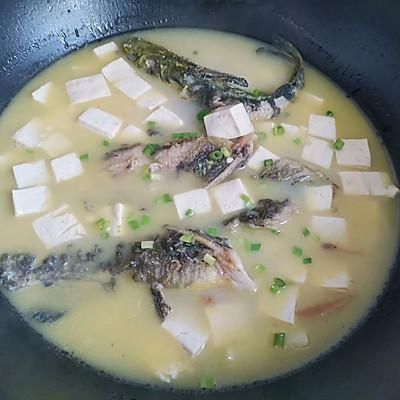 昂刺鱼 3条嫩豆腐 一块盐 适量葱姜 适量开水 一壶鸡精 适量油 适量做法步骤