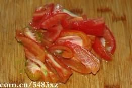 2. 番茄2个去皮切成块备用