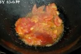 4. 下番茄块炒软后,倒入番茄酱翻炒