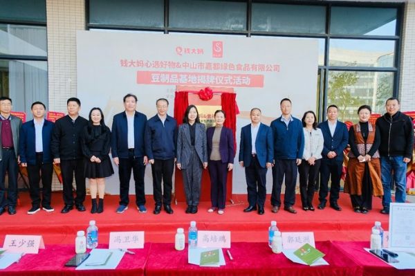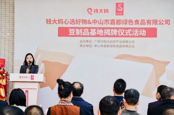 12月13日,钱大妈集团与中山市嘉都绿色食品有限公司在中山市举行钱大妈&素礼坊豆制品标准生产示范基地揭牌仪式。