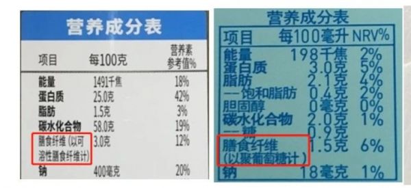 此时需要在配料表中标识出膳食纤维的添加量,也可以在营养成分表中标注出膳食纤维的含量。