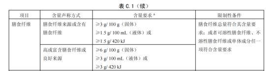 膳食纤维在满足含量声称或比较声称条件之一时,可以进行功能声称。