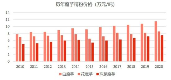 据君屹资本资料,当前国内魔芋应用领域除食品外多数技术仍停留在高校实验室内。魔芋产业发展还有很长的路要走。除此之外,随着魔芋制品消费逐渐升温,魔芋原材料需求增大,其价格也水涨船高,魔芋精粉供应可能逐渐会形成缺口,目前魔芋精粉价格平均约为9.2万元/吨。供应链问题也可能会成为掣肘产业发展的因素。