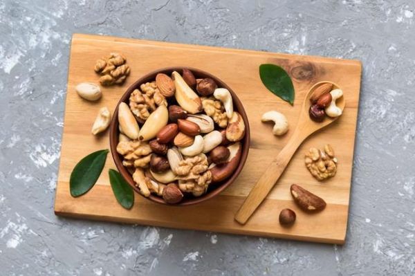 坚果中膳食纤维和不饱和脂肪酸含量高,可以增强饱腹感,减少对其他食物的摄入,有利于控制血糖。
