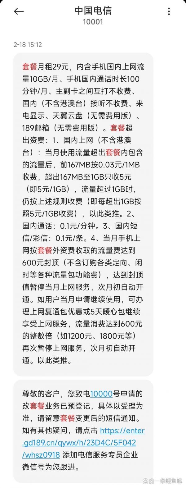 电信套餐终于变更成功了! 之前的套餐一个...全文