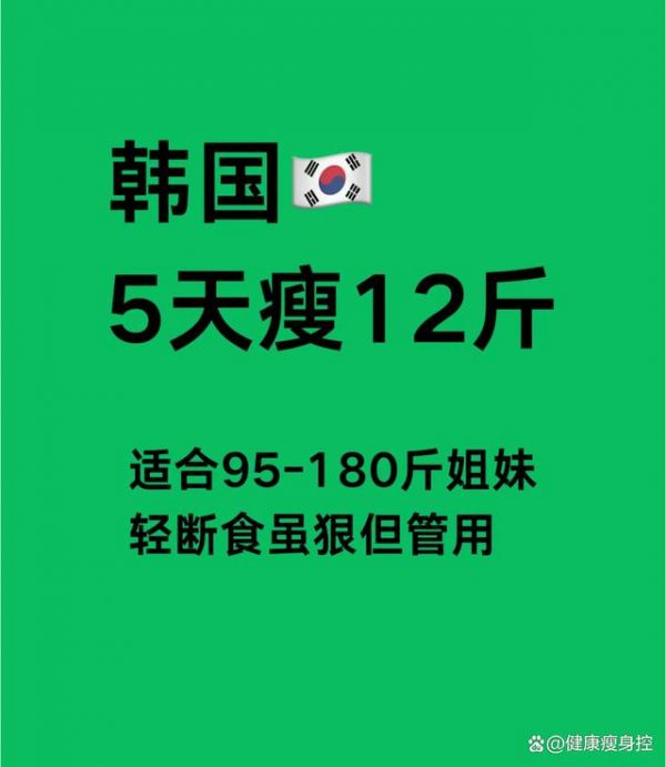 韩国艺人们的极端减肥法中,有一种号称5天能减重约6公斤(即12斤)的速效方案。这一方法涉及严格的单日食物限制策略,但值得注意的是,此类快速减肥法可能并不适合所有人,且长期来看其健康效益及可持续性有待医学专家评估。以下是这个五天减肥计划的具体内容: