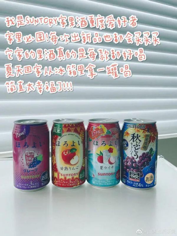 我是 SUNTORY家果酒的重度爱好者,家里必囤! 每次出新品也都会买买买,它家的 果酒真的是每款都好喝,夏天回家从冰箱里拿一罐喝,简直太幸福了!