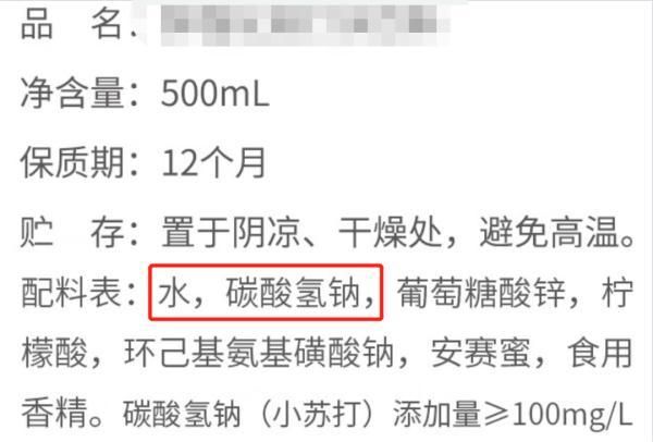 主要成分:水+碳酸氢钠,喝起来没有气,有天然和人工合成的之分。
