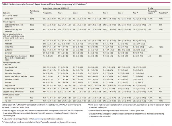 JAMA Netw Open:对 Roux-en-Y 胃旁路术和袖状胃切除术后疼痛、身体功能和工作效率改善的 7 年研究。