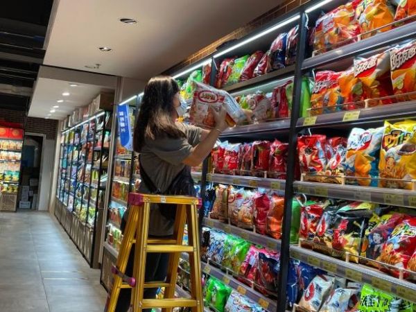 超市工作人员正在上架“双11”促销货品。 海口日报记者李银 摄