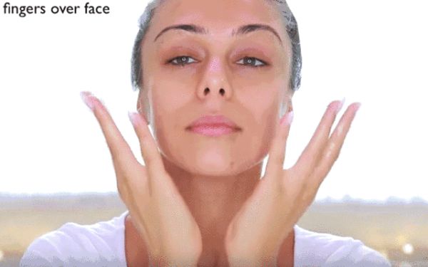 step1.清洁面部和手指以后,十指轻轻拍打全脸让整个脸部皮肤热起来,增强血液循环。