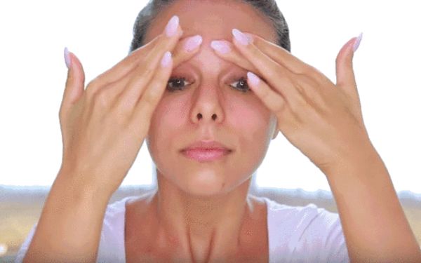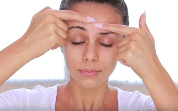 step4.这招主要针对抬头纹,两手食指上下来回轻柔额头,拉伸额头的肌肤纹理,