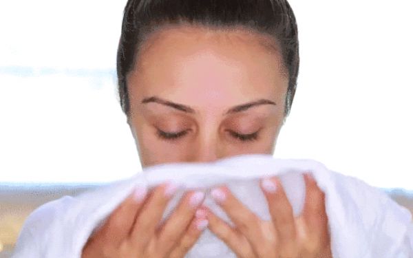 step5.按摩完记得用热毛巾敷脸促进脸部精华的吸收。