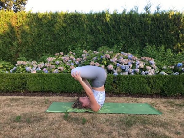 3.这个体式可以拉伸腰腹部的肌肉,缓解长期久坐引起的不适,消除精神焦虑。