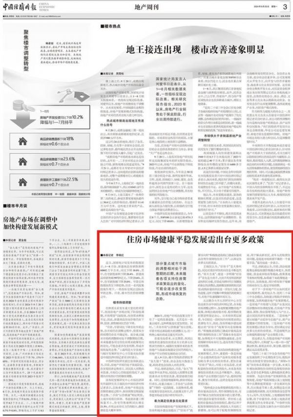 地产周刊丨住房市场健康平稳发展需出台更多政策