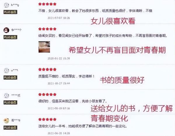 这本书获得了不少妈妈们的认可,她们一致表示,把这本书送给女儿后,女儿很喜欢看。还有的说,希望女儿不再盲目面对青春期。