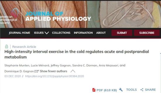 研究人员招募了11名平均年龄23岁的中等健康超重志愿者,让他们在21℃“热中性”环境和0℃低温环境的两种条件下进行一系列标准的高强度间歇训练:首先以最大力量的90%(90%氧饱和度)进行10次1分钟的自行车冲刺,然后以30%的力量进行90秒的骑自行车恢复期,在两种训练结束后都有一段休息期。晚间训练后,参与者在20点时吃一个营养棒(45克碳水、5克脂肪和9克蛋白质)。除了饮水以外,其他食物不允许食用。