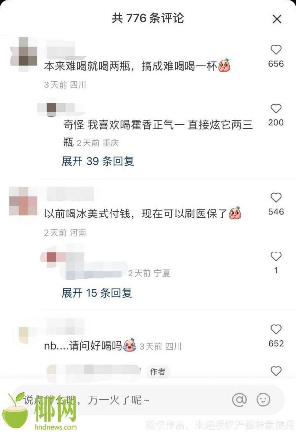 近日,一款网友自制的“藿香正气冰美式”饮品红遍了社交网络平台,不少网友纷纷效仿,认为这样的饮用方法能够提神醒脑并且解暑。藿香正气水作为一款药品,真的能够和冰咖啡混合饮用吗?8月25日,国际旅游岛商报记者采访了部分市民发现,大家对于这样的饮用方式存在质疑。