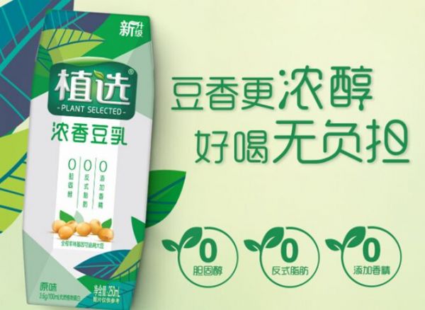 2017年12月,伊利推出植物蛋白饮品植选浓香豆乳,该产品拥有0胆固醇、0反式脂肪酸、0添加的健康产品属性,为国人提供更优质的植物蛋白供应。