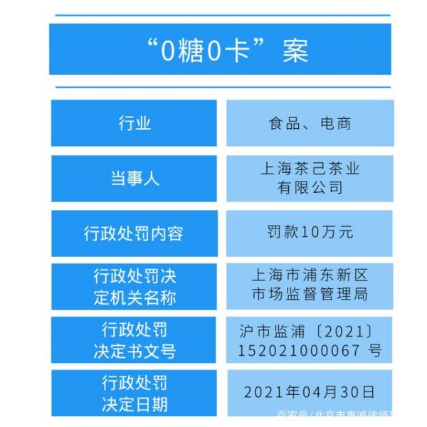 那到底何种情况下,可以宣称自身产品是“无糖”“代糖”“0热量”“0卡”呢?本案的行政处罚决定书可以给我们一些启示。