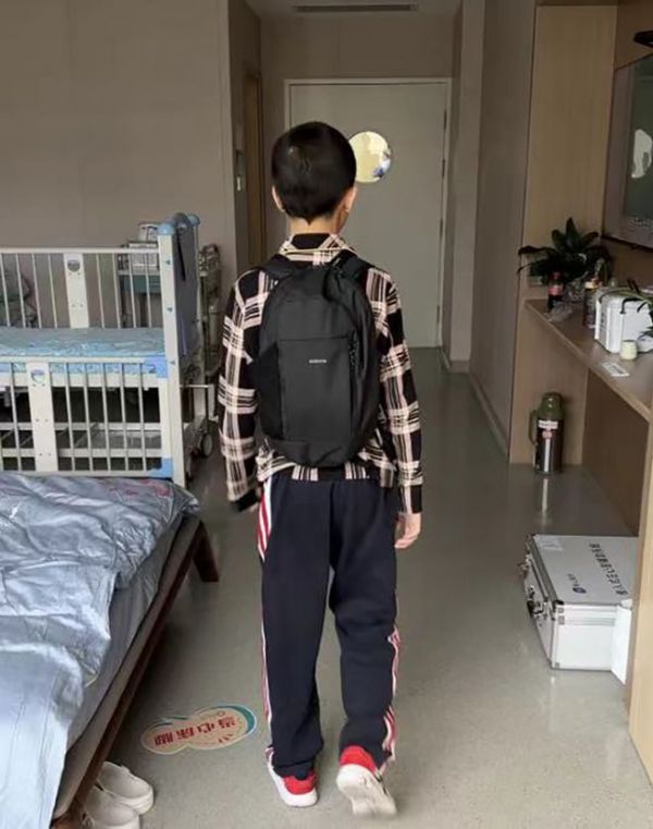 4月24日,浙江大学医学院附属儿童医院病房,12岁的成成背着“双肩包”轻松地走来走去。