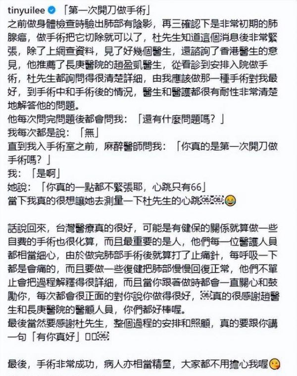 肺腺癌的早期发现和及时治疗,给了田蕊妮重生的机会。这也提醒我们,健康的重要性远胜过一切。定期体检,关注自身健康,才能更好地享受生活。希望田蕊妮能够早日康复,也希望杜汶泽能够从过去的经历中吸取教训,重新找到人生的方向。
