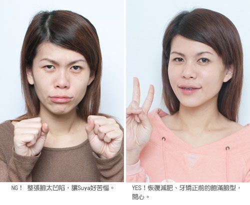 Suya说,「我很怕痛,之前为了拔牙,口腔打麻药时好痛,拔完牙,整个口腔,都是血的味道,现在想起来都觉得好可怕,如果可以重新选择,我只会作不拔牙的矫正。这次要作这么多位置的微整形,本来也是最担心会很痛,真的打了之后,原来只有入针时,像蚊子叮,有点麻麻的,没有想像中那么痛,而且作完之后,脸恢复到三、四年节食前的脸型,很开心。」