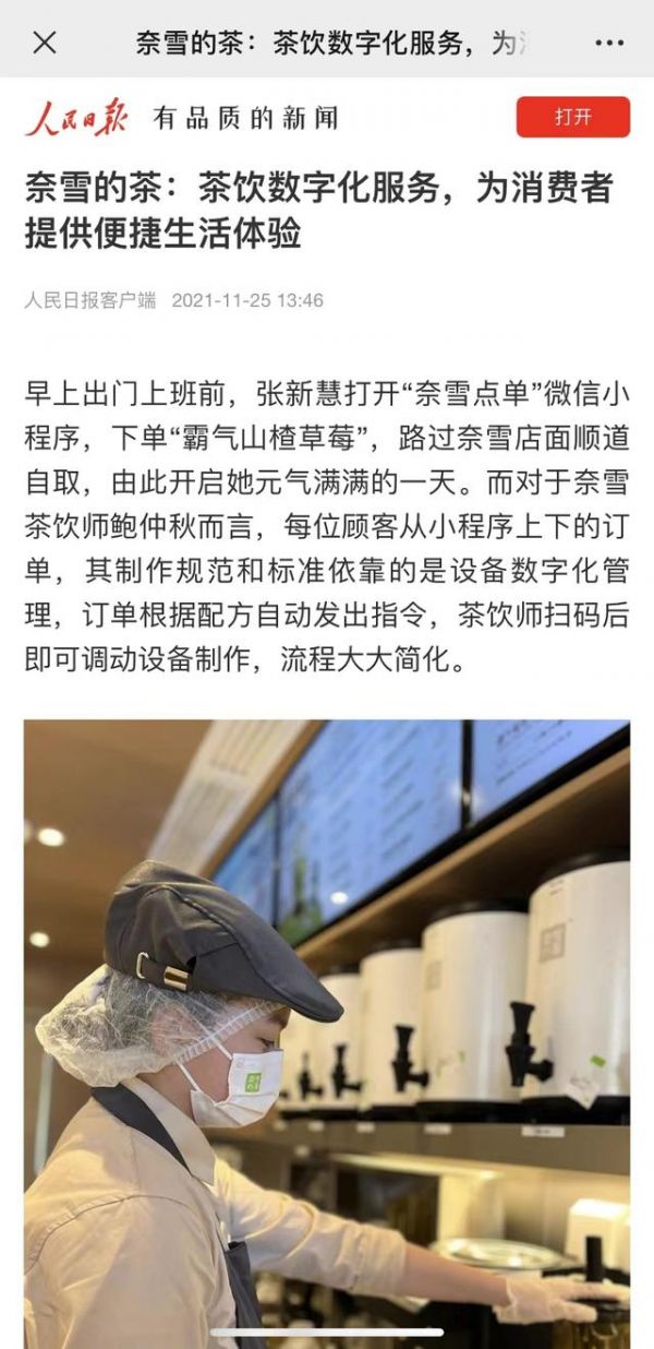 人民日报:奈雪的茶深耕数字化,为消费者打造美好生活