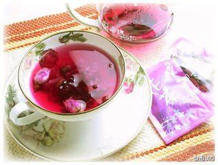 作法:将洛神花和玫瑰花苞洗净,用沸水500cc冲开后,浸泡十分钟即可饮用。饮用时可加入一点蜂蜜或冰糖调味。
