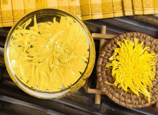其干茶冲泡简单、随泡随饮,但注意不能隔夜。选用95度左右的开水,使菊花内质养分融入茶汤中,汤色略微泛黄,等待温度适宜时即可饮用,滋味清香微甘,可加入冰糖在里面反复冲泡,味道持久。