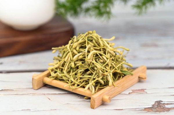 是中国窨制花茶中的再加工类名茶,它采用优质绿茶为茶叶的素坯,并加入新鲜金银花从而制作而成。金银花性寒味甘,有清热利喉的用处,在经过三次窨花之后,茶香依旧浓厚耐久,且内质营养丰富。