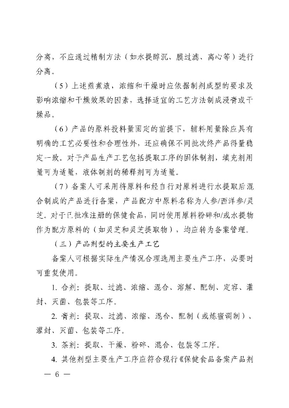 原料要求:应固定基源、产地(产区)、供应商(不超过2家)。用于生产备案产品的原料应为符合现行《中国药典》的中药饮片投料;采用符合现行《中国药典》的中药材为原料的,备案人应具备原料前处理加工能力,并根据产品生产需要,加工成符合制剂投料使用的饮片规格。