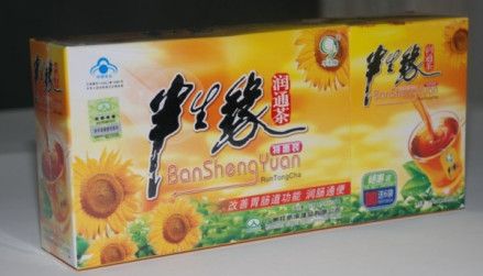 半生缘润通茶选用优质茶叶为主要原料,加入药食同源植物:菜菔子、决明子、罗汉果、荷叶,经科学方法加工制成袋泡茶, 便于携带和保存,泡服方便,甘香可口,经功能学试验证明具有润肠通便功能,特别适合于大便便秘者饮用。